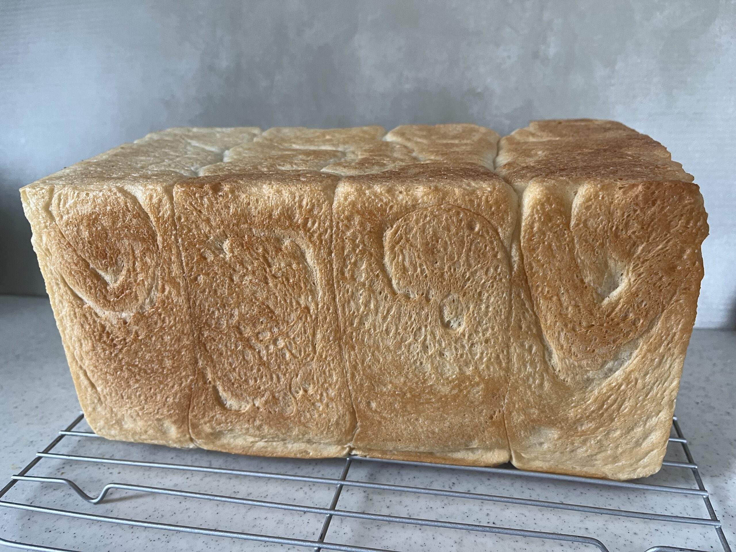 2斤食パン ※アフィリエイト広告を利用しています。 パンづくり 2026.01.19 おはようございます。 昨日も朝からパン作り、食パンはよく食べるので結構作っていて、はじめは1斤で焼いていたのですが、あっという間になくなってしまうので最近は毎回2斤で焼いています。冷凍ストックもしています。 スキムミルクを入れない代わりに牛乳を使用したり自分なりにアレンジして作っています。何度も焼いていますが焼きムラがあったり、キメが荒かったりまだ満足していない部分がたくさんあり、発酵温度や時間を少し変えてみたり試行錯誤しながら作っています。 バターはちみつトーストで美味しく頂きました!
